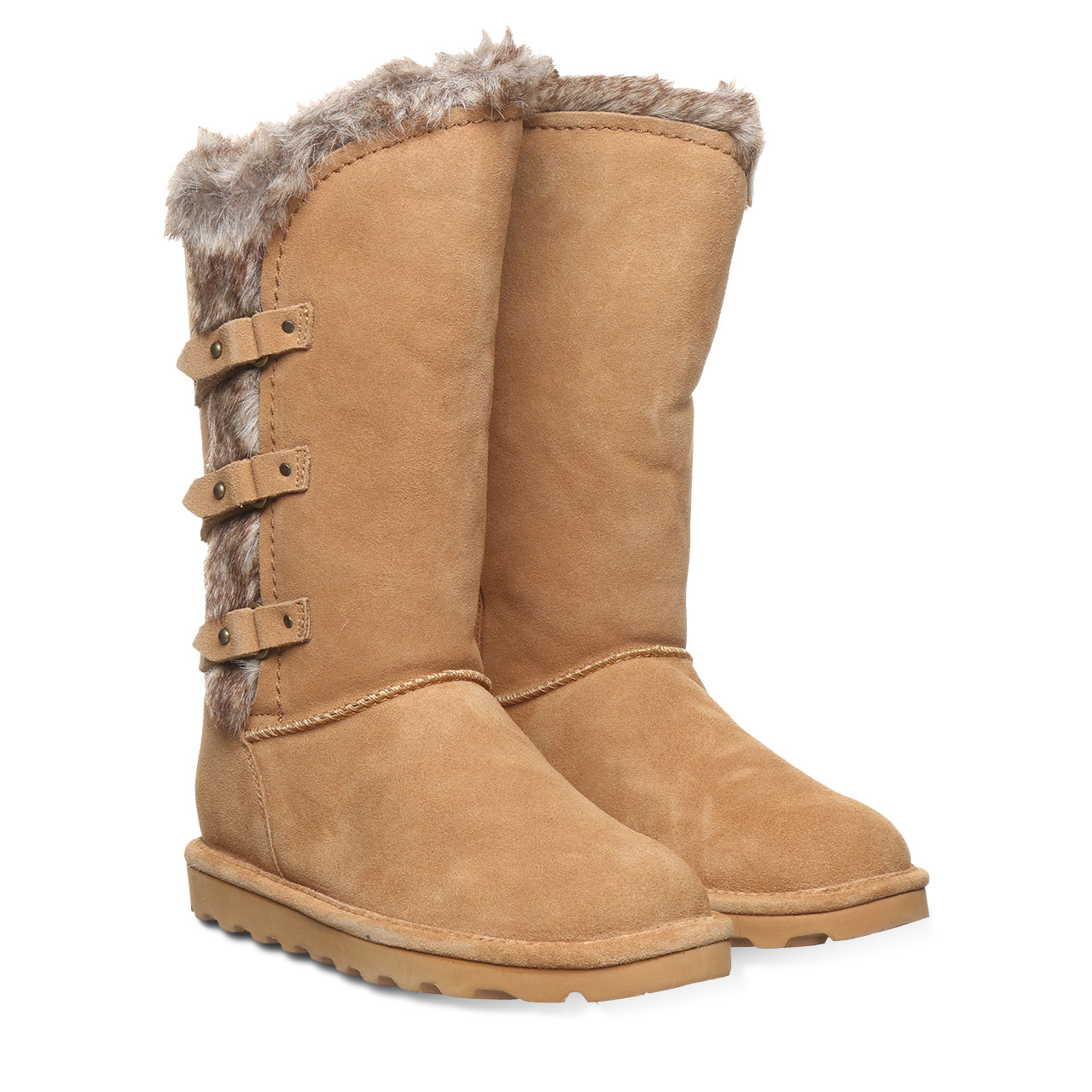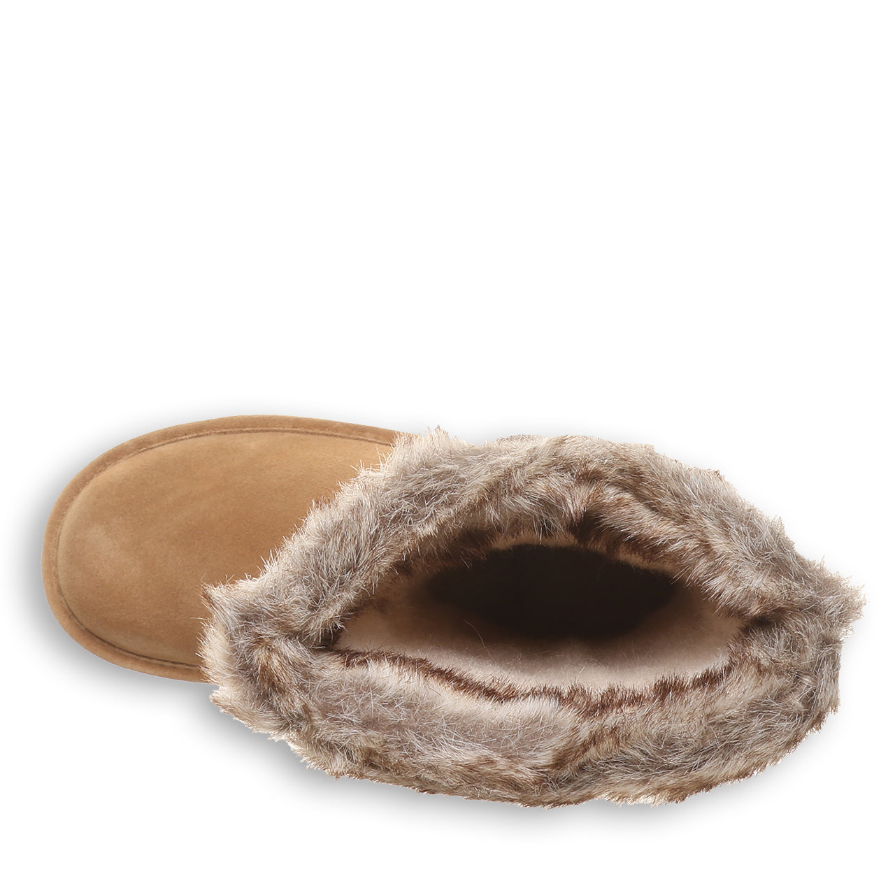 Make a statement with this cozy. free-spirited 11 inch tall boot. Adorned with three decorative strap detail and faux fur collar accent. Treated with NeverWet? technology for extra protection from the elements.