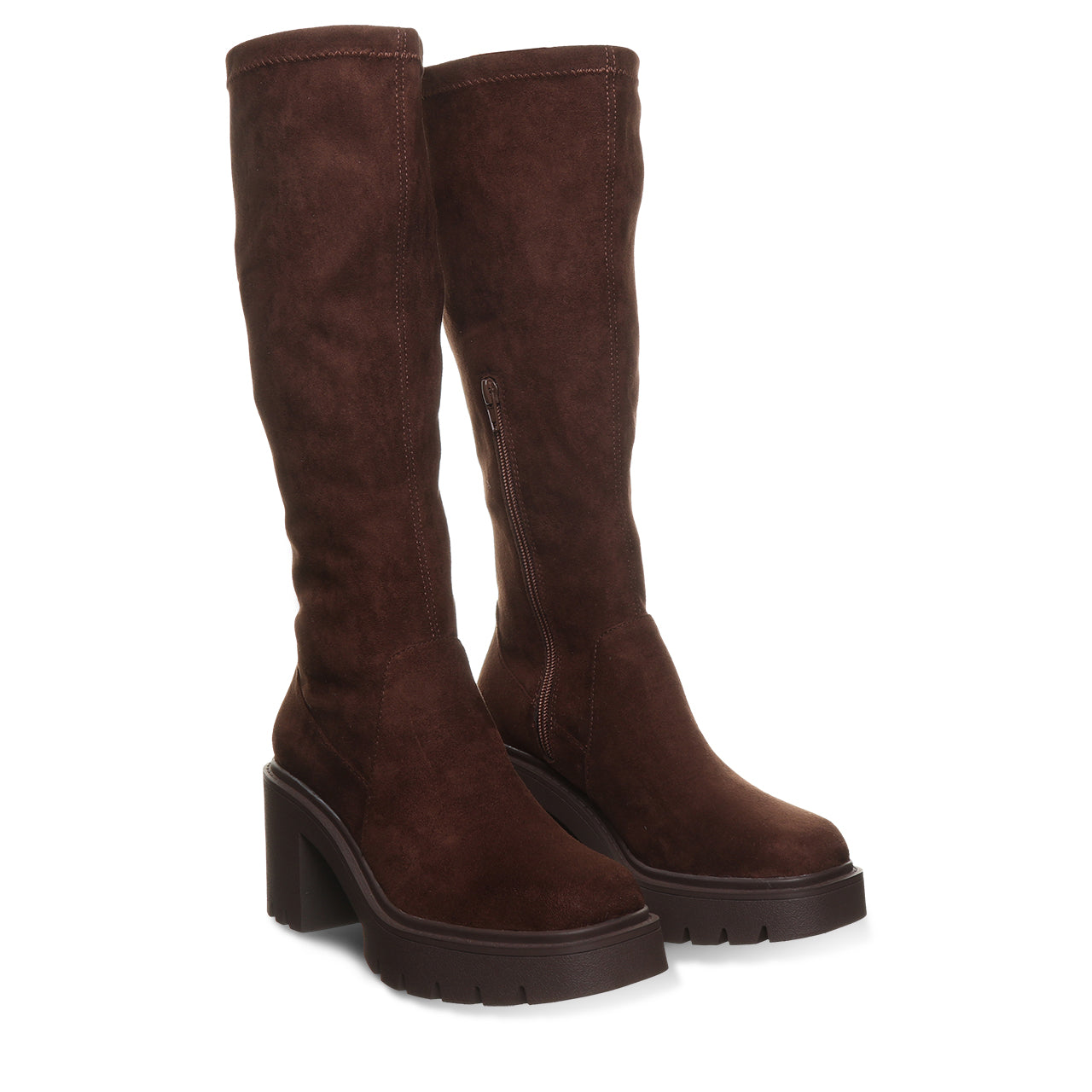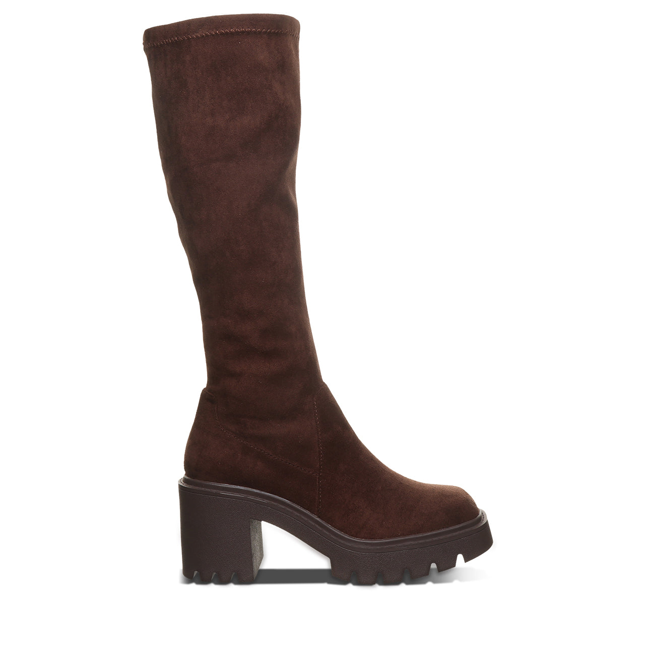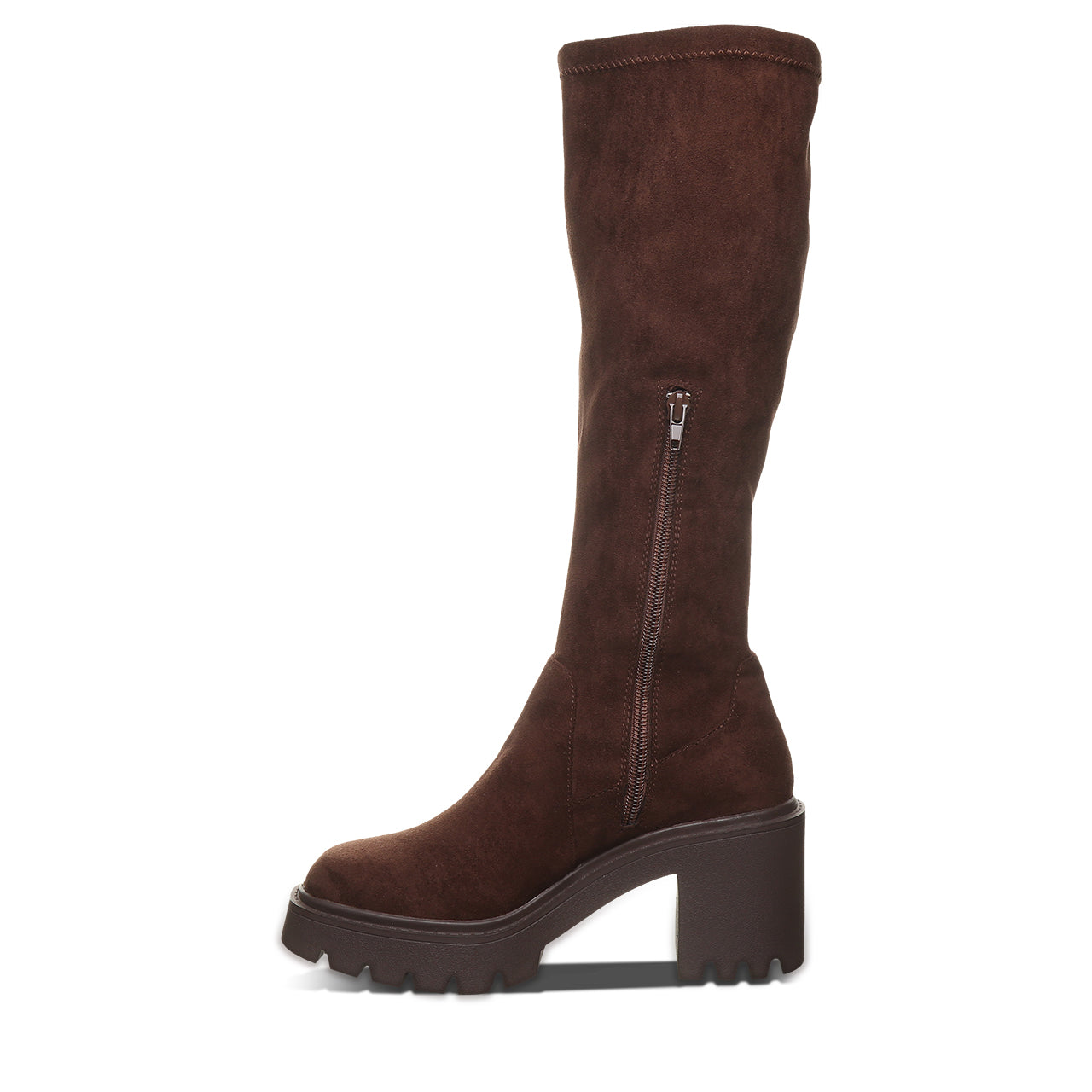 Effortlessly blend style and confidence this fall with a new offering from BEARPAW. Crafted from soft faux suede. this sleek knee-high design features a side zipper for easy wear and a chunky lug heel for classic flair. Monroe is the perfect boot to take you on a chic night out.