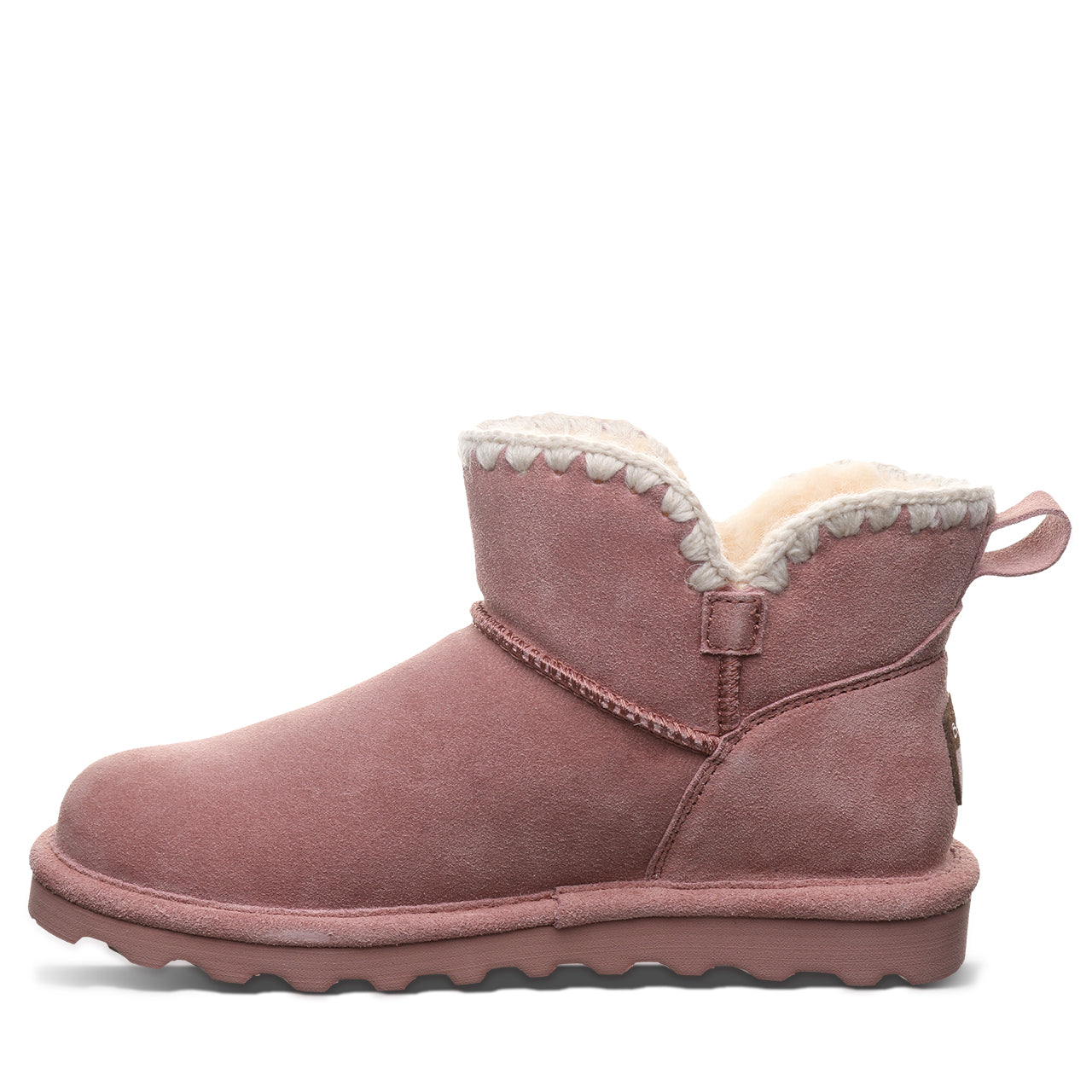 Your new cozy BFF is just waiting to be ordered. These mini boots are fashionable and functional with cozy plush wool blend lining. stylish crochet collar trim and the signature BearCoat Rain and Stain repellent you love. Pair these suede winter booties with a puffer. oversized hoodie and a playlist that hits.